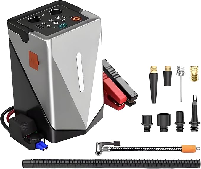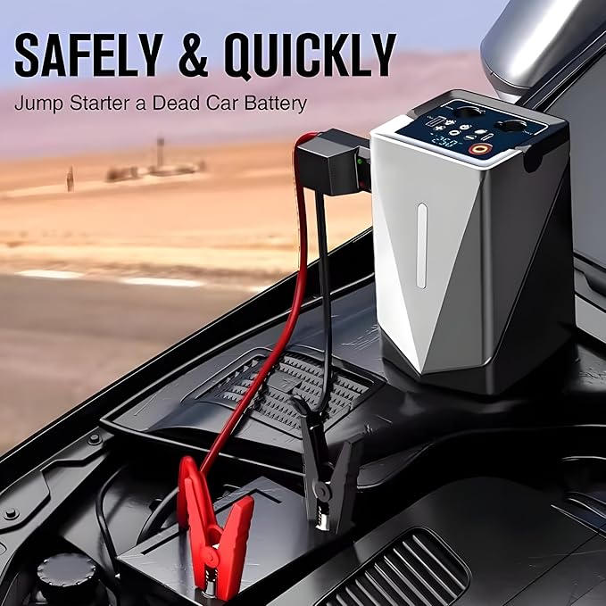 – All-in-One Emergency Kit – Combines a car jump starter and tire inflator into one compact, professional-grade tool.